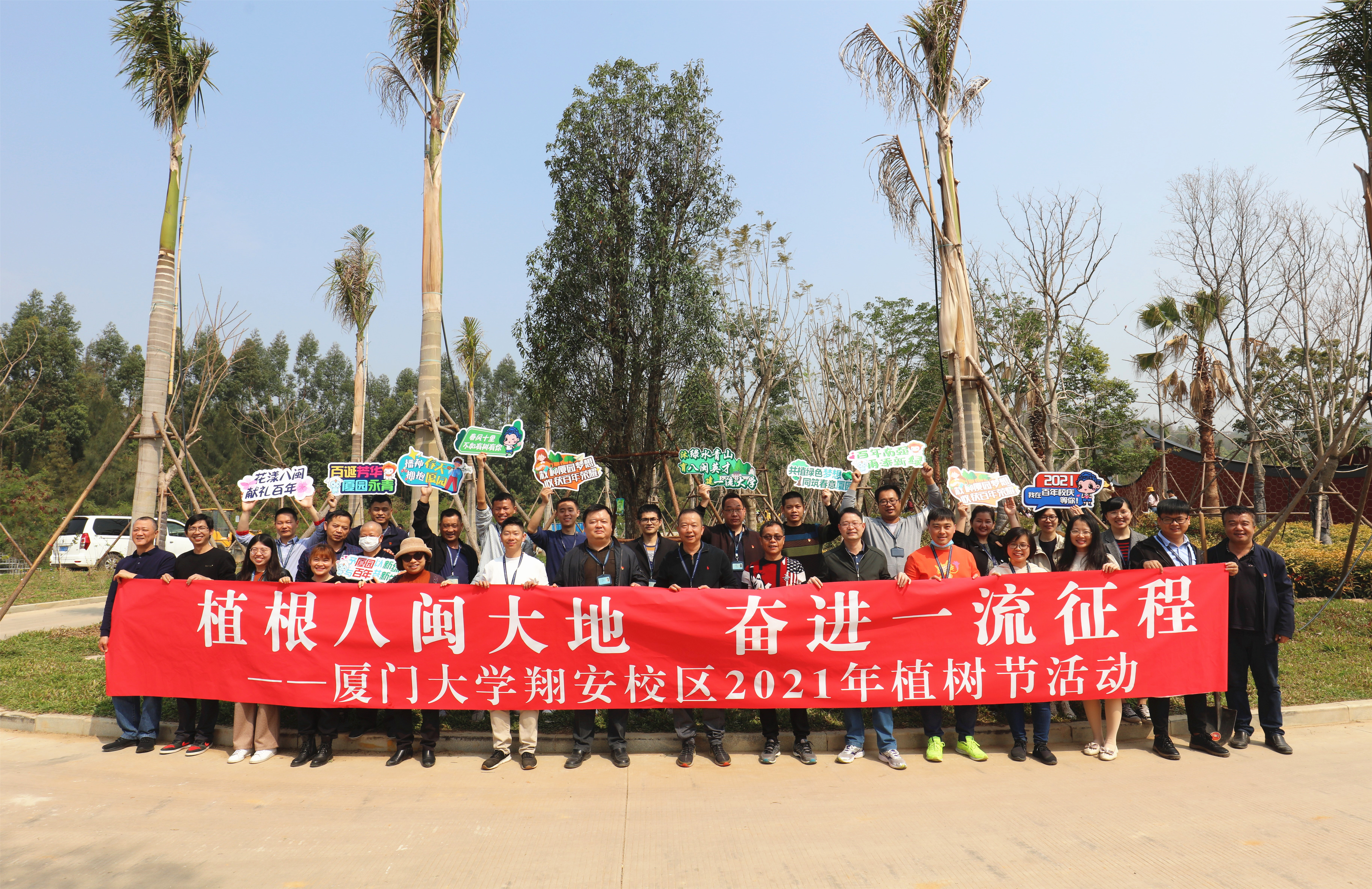 为深入贯彻生态文明理念,传承和发扬校区爱树、植树、护树的优良传统,充分发挥“八闽园”作为厦门大学生态实践教学基地的育人功能,创造更加优美的校园环境迎接学校百年华诞,在我国第43个植树节来临之际,翔安校区师生在八闽园开展植树和劳动教育实践活动。翔安校区管委会工作人员、校区各学院师生代表、校区管委会党支部全体党员、校区团学组织学生干部代表参加了活动。